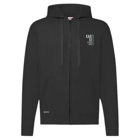 Fruit Of The Loom hoodie m. lyn, med logo og navn. - Unisex model - Farve: sort - Gennemgående lynlås - Hætte med snoretræk - Kængurulomme foran Tryk er inkluderet i prisen