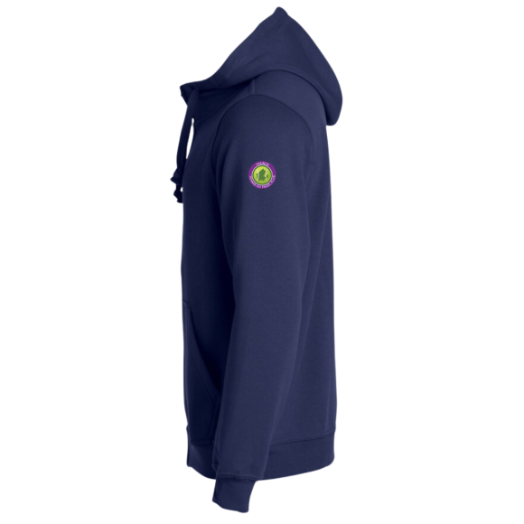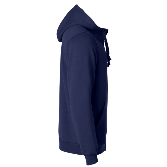 Clique Basic hoody Full Zip i farven navy, er en lækker hættetrøje med gennemgående tone i tone lynlås.