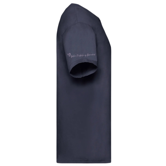 Fruit Of The Loom t-shirt med rundhals i unisex model, med et hjerte på brystet samt logo på ærmet. Tryk: Logo er inkluderet i prisen. Tilkøb:Du kan tilkøbe et lille navn foran for 30 kr.